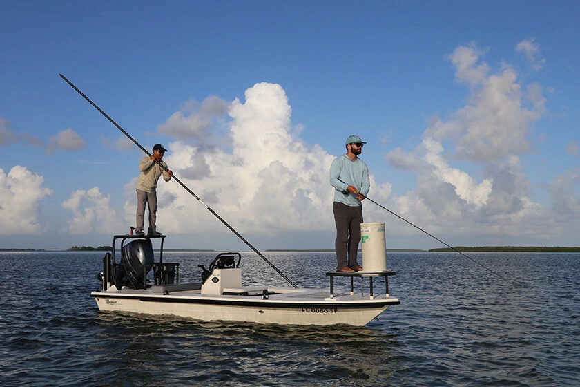 Although carbon fiber poles are more expensive, they are a superior product that is easier to manage for long periods of time and are lighter and stronger than traditional fiberglass push poles. Including the tip and foot, our lightest pole measures 12 feet and weighs only 2.9 pounds. For flats anglers who spend a lot of time poling, our carbon fiber series is ideal.